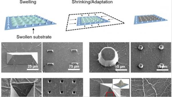 該方法利用濕法轉(zhuǎn)移和自適應(yīng)基底,不僅這些集成的三維形狀比以前文獻(xiàn)報(bào)道的大,而且更均勻、在邊角沒(méi)有破損。三維的尺寸為3.5到50微米。集成過(guò)程過(guò)程為:基板使用溶劑溶脹;在溶劑蒸發(fā)過(guò)程中,使石墨烯與其相適應(yīng),包覆在襯底上。