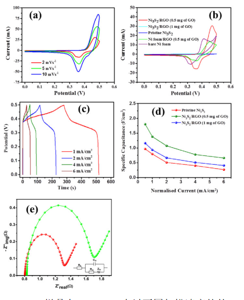 2及其不同濃度RGO雜化物的贗電容儲(chǔ)能性能。0.5mg GO的Ni