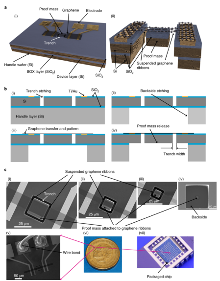 https://doi.org/10.1038/s41928-019-0287-1)上。原文:Graphene ribbons with suspended masses as transducers in ultra-small nanoelectromechanical accelerometers
