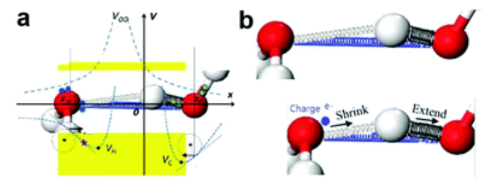 Fig. 5 O:H-O鍵協(xié)同弛豫。(a) O:H-O鍵中的共價(jià)鍵電勢(shì)V