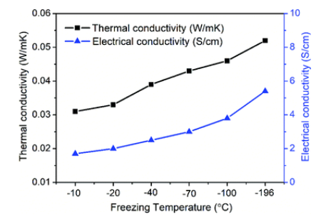 Fig. 9 GA的導(dǎo)熱系數(shù)和導(dǎo)電性與凍結(jié)溫度的關(guān)系。