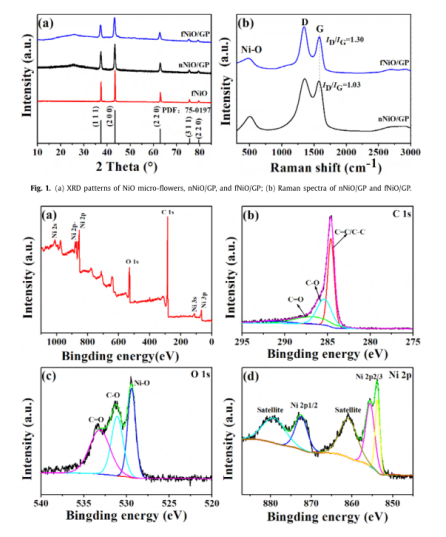 Scheme 1. NiO/GP制造過程以及所得的包含納米顆粒(nNiO)和微花(fNiO)紙結(jié)構(gòu)的示意圖。