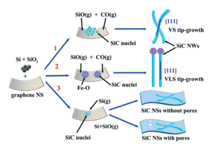 Figure 5. SiC納米線和納米片的形成過程示意圖。