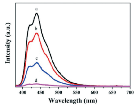 Figure 6. SiC納米線和納米片的PL光譜,激發(fā)波長分別為(a) 270 nm, (b) 300 nm, (c) 330 nm 和 (d)360 nm。