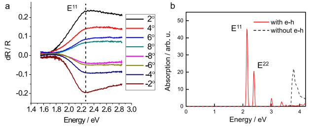 Figure 3. 7-AGNRs光吸收的實(shí)驗(yàn)結(jié)果和理論計(jì)算。