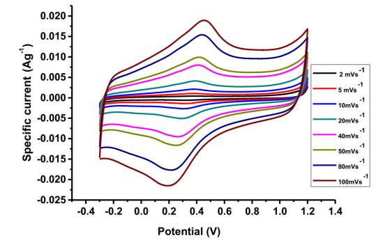 3納米復(fù)合電極在不同掃描速率下的CV曲線