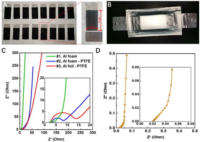 Figure 3. 石墨烯-鋁泡沫電極和石墨烯-鋁箔電極的EIS表征。