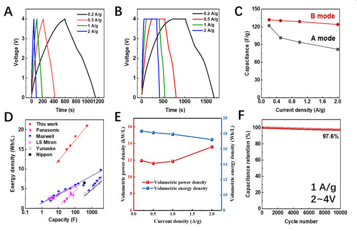 Figure 4. 超級電容器器件的電化學性能。