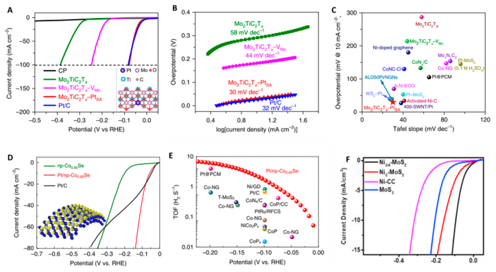 Figure 1. SAC@2D用作析氫催化劑的性能。