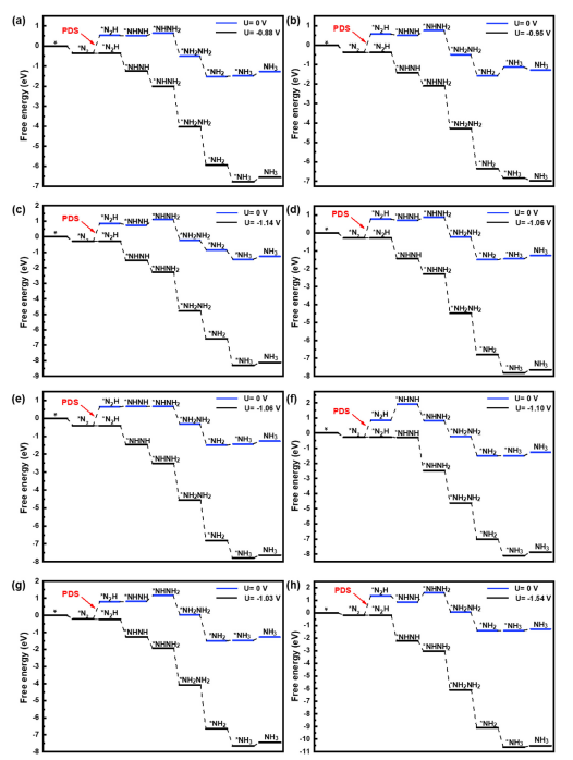 DA/GS上零和施加電勢下NRR的吉布斯自由能圖。