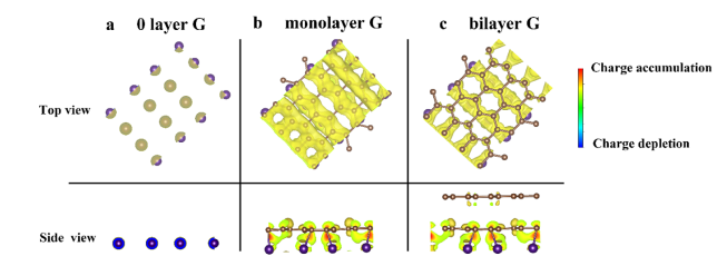 Fig. 6 模擬的差分電荷密度說明了具有不同G厚度的電子分布的變化:(a)0層,(b)單層,(c)雙層。