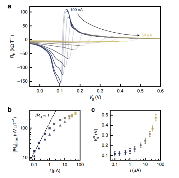 -1/2。所構(gòu)建的微米級(jí)器件,室溫下其性能可與目前所報(bào)道的最佳霍爾傳感器相媲美,而溫度低至4.2開爾文(或華氏452.11華氏度)的情況下,其性能優(yōu)于其他霍爾傳感器,證明了該傳感器在幾個(gè)特斯拉磁場(chǎng)中優(yōu)異的性能,呈現(xiàn)出量子霍爾效應(yīng)。