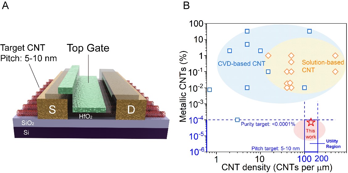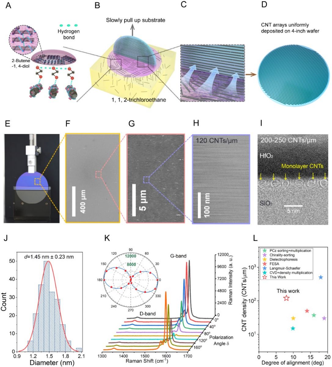 圖2.高密度、高純度半導(dǎo)體碳管陣列的制備和表征