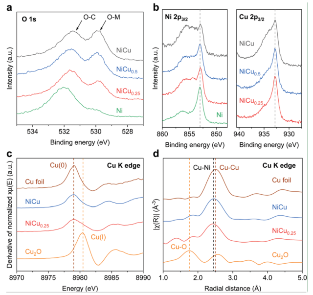 2電化學(xué)還原。與單金屬Ni催化劑相比,由于存在雙金屬活性位,NiCu
