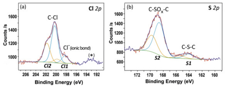 Fig. 2. 通過x射線光電子能譜(XPS)獲得了SOCl