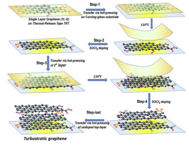 Fig. 7. 單層石墨烯(1L-G)疊加形成摻雜渦輪增壓多層石墨烯薄膜的工藝方案。