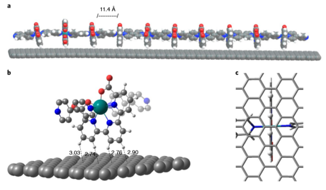 利用水作為電子來源的光電化學電池是清潔、可持續(xù)的太陽能燃料替代化石燃料的最具吸引力的解決方案之一。為此,需要掌握并正確理解多相水氧化催化。該研究還在繼續(xù)尋找一種催化劑,這種催化劑既能穩(wěn)定在電(光)陽極表面,又能有效地在所需的中性pH值下進行反應(yīng)。在這里,通過釕結(jié)合的輔助配體和石墨表面的六角形環(huán)之間的CH - h相互作用,我們展示了如何將低聚釕配合物錨定在石墨材料表面,從而控制其分子覆蓋率。這些雜化分子材料表現(xiàn)為分子陽極,可在高電流密度下在pH 7時催化水氧化為雙氧。這種將分子催化劑錨定在石墨表面的策略,可以推廣到其他過渡金屬和其他催化反應(yīng)中。