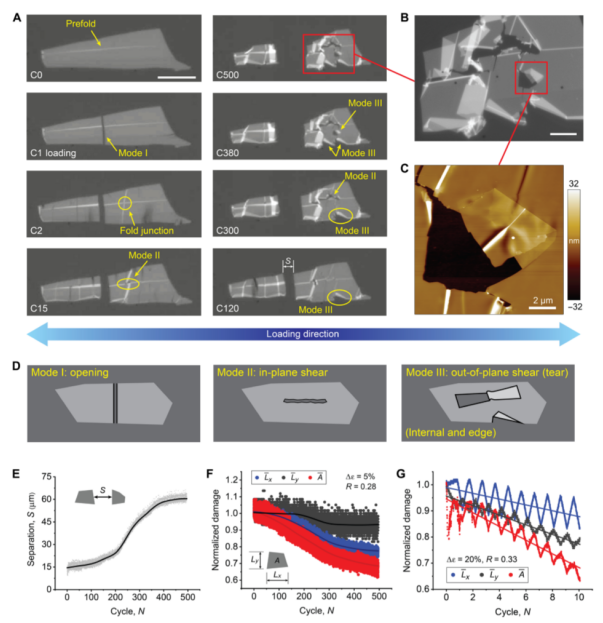 Fig. 2. 石墨烯的混合模式疲勞斷裂和損傷。