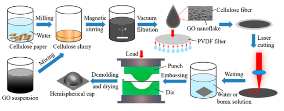 Figure 1. GO-纖維素半球形帽的構(gòu)建步驟。