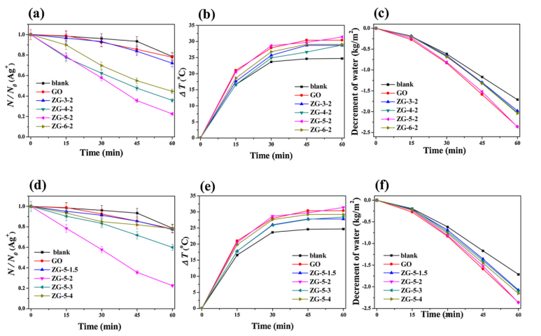 +離子在ZIF-67晶體上的吸附和光還原導致Ag納米顆粒在膜表面沉積,從而促進了可見光的捕獲,抑制了電子離子的復合,空穴對促進了光熱效應。同時,GO襯底上高效率的光熱轉(zhuǎn)化實現(xiàn)了水的蒸發(fā),而濃縮了Ag