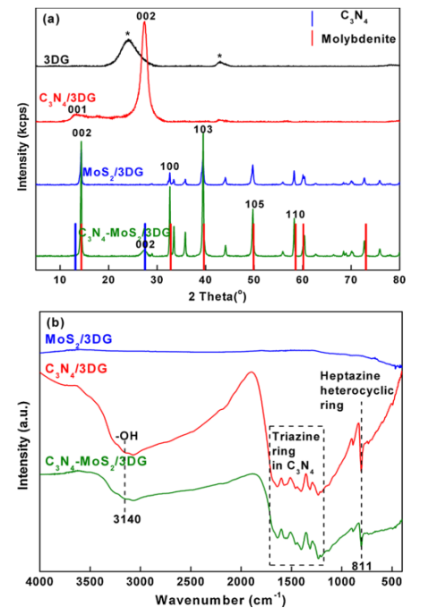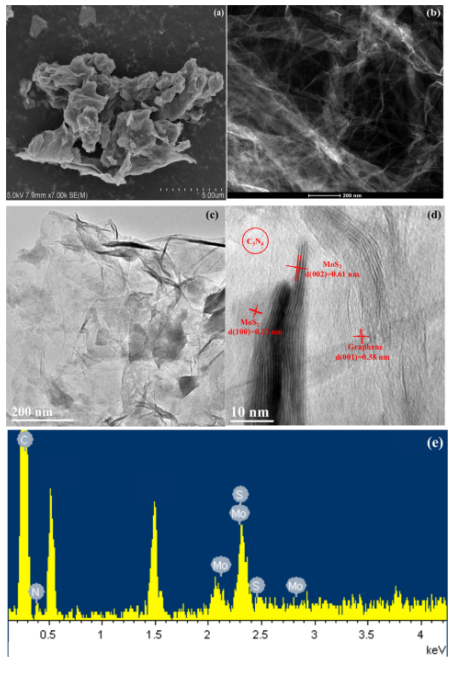 2/3DG的XPS 圖譜: (a) C 1s, (b) N 1s, (c) Mo 3d, (d) S 2p