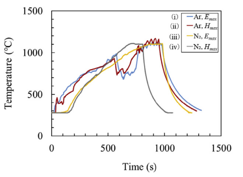 Figure 1. 不同加熱條件下,prGO的時間與溫度(300-1100℃)的關(guān)系圖
