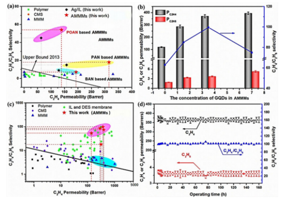 Figure 4 GQD/RIL AMMMs的分離性能可實現精確的乙烯/乙烷分離。