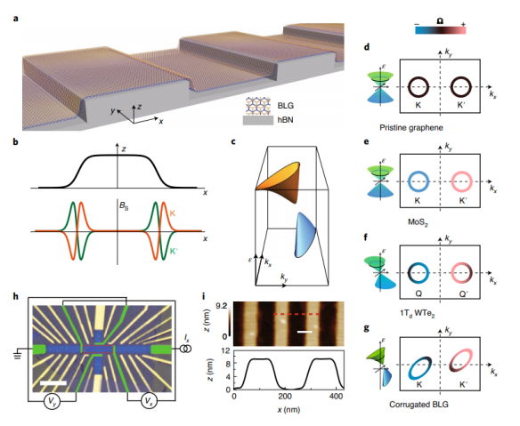 Fig. 1 人工波紋BLG及其電子性能。
