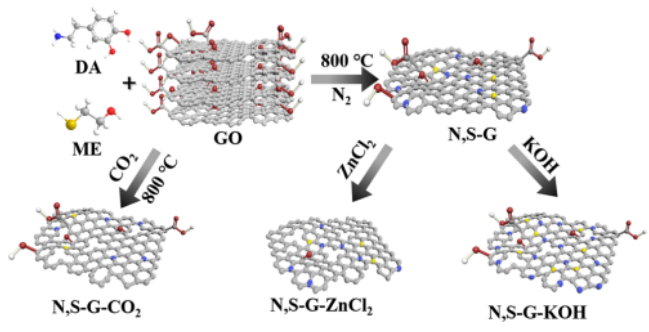 Figure 1. 通過不同策略合成碳催化劑的過程示意圖。
