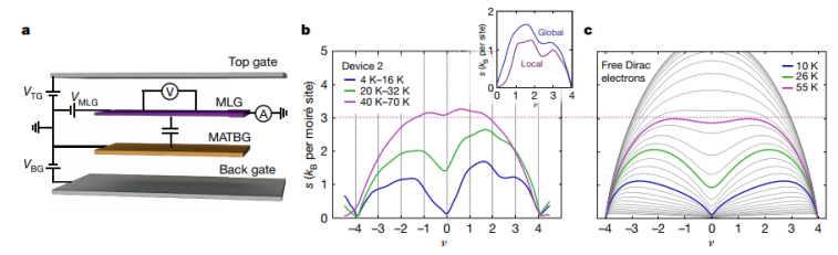相關(guān)研究成果于2021年以色列魏茨曼科學(xué)研究學(xué)院Shahal Ilani,Erez Berg 和MIT 的Pablo Jarillo-Herrero,發(fā)表在Nature(https://doi.org/10.1038/s41586-021-03409-2)上。原文:Entropic evidence for a Pomeranchuk effect in magic-angle graphene。