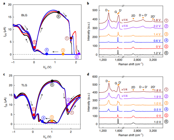 -1的較低薄層電阻極限,因此在室溫下,石墨烯場(chǎng)效應(yīng)晶體管的導(dǎo)電/截止電流比為108。該器件還具有很高的耐用性,具有高達(dá)1百萬次的開關(guān)周期。在雙層石墨烯中也觀察到類似的絕緣行為,而三層石墨烯在氫化后仍保持高導(dǎo)電性。石墨烯晶格的變化,以及從sp