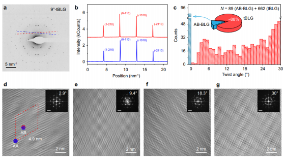 -1,證實了tBLG的高結(jié)晶質(zhì)量。該研究為基礎(chǔ)研究和實際應用中tBLGs的可控增長開辟了一條途徑。
