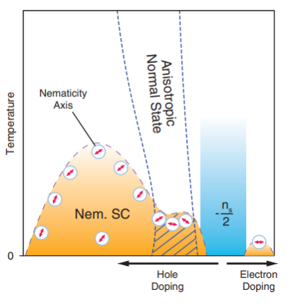 在固態(tài)系統(tǒng)中,強(qiáng)相互作用電子通常在基態(tài)中顯示出多個(gè)破壞的對(duì)稱性。不同階參數(shù)之間的相互作用可以產(chǎn)生豐富的相圖。報(bào)道了在魔角扭曲雙層石墨烯(TBG)中識(shí)別具有破碎旋轉(zhuǎn)對(duì)稱性的纏繞相。利用橫向電阻測(cè)量,發(fā)現(xiàn)一個(gè)強(qiáng)各向異性相,位于超導(dǎo)圓頂?shù)那窊诫s區(qū)域上方的“楔形區(qū)”內(nèi)。當(dāng)它與超導(dǎo)圓頂交叉時(shí),觀察到臨界溫度的降低。此外,超導(dǎo)態(tài)表現(xiàn)出對(duì)與方向相關(guān)的面內(nèi)磁場的各向異性響應(yīng),揭示了整個(gè)超導(dǎo)圓頂?shù)南蛄杏行?。這些結(jié)果表明,向列波動(dòng)可能在魔角TBG的低溫相發(fā)揮重要作用。