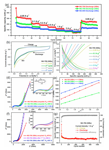 Figure 5. 合成的N摻雜石墨烯的電化學(xué)Na