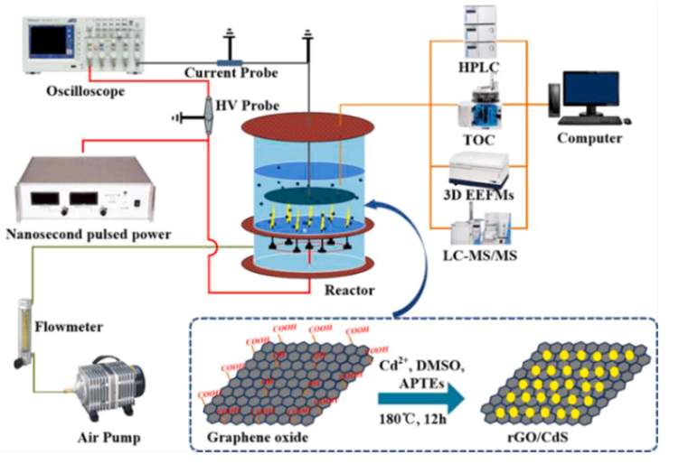 在這項(xiàng)工作中,在一系列石墨烯-CdS (rGO(x)/CdS) 納米復(fù)合材料的水溶液中進(jìn)行等離子體輔助催化降解雙酚A (BPA)。提出了一種脈沖氣液混合放電(PHD)來誘導(dǎo) rGO(x)/CdS納米復(fù)合材料的“偽光催化”效應(yīng),并促進(jìn)⋅OH自由基的形成。與純CdS相比,rGO(x)/CdS納米復(fù)合材料具有更窄的帶隙、更合適的導(dǎo)帶位置和更高的電子-空穴 (e