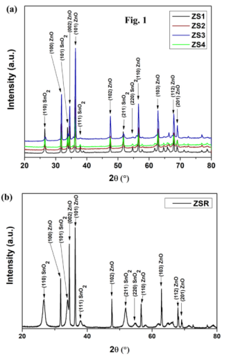 2 納米復(fù)合物 (ZS1, ZS2, ZS3,ZS4), (b) rGO 修飾的 ZnO-SnO