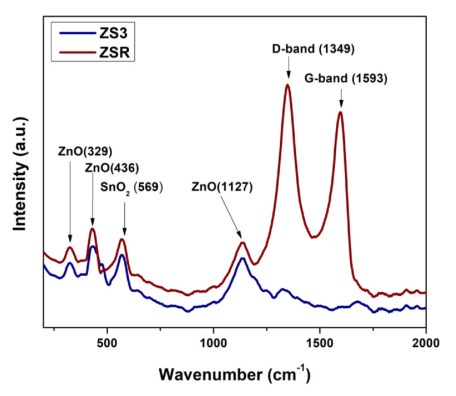 圖 3. ZS3 和 ZSR的拉曼圖譜