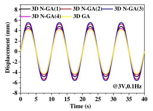 圖9. 不同3D N-GA(3)驅(qū)動(dòng)器在3v 、0.1 Hz下的電致位移曲線
