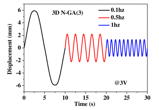 圖11. 3D N-GA(3)驅(qū)動(dòng)器在3V正弦波輸入電壓下不同頻率(0.1-1 Hz)時(shí)的電致位移