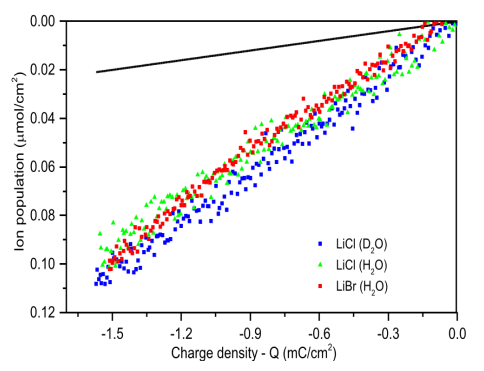 2O)的電荷密度函數(shù)的離子群變化。從法拉第公式計(jì)算的離子數(shù)量變化由黑色實(shí)線表示。