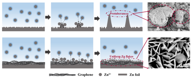 圖6. 鋅箔與石墨烯@Zn電極之間的對(duì)比示意圖。