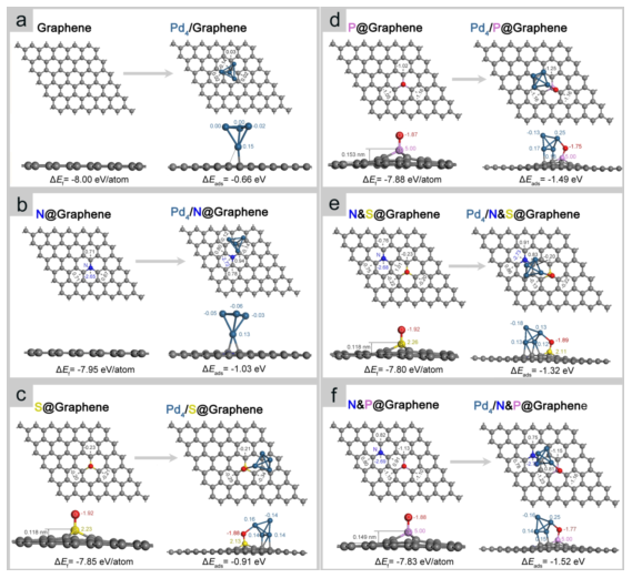圖5 優(yōu)化的雜原子摻雜石墨烯和Pd