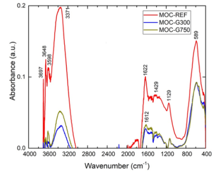 圖9. MOC-REF、MOC-G300和MOC-G750復(fù)合材料在400-4000 cm