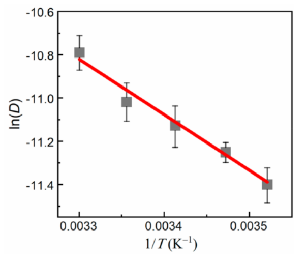 ad的SLG的表觀表面擴散系數(shù)D隨溫度變化的阿倫尼烏斯圖。通過在0.5 M H