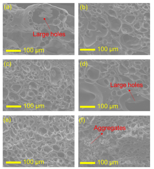 [email protected]%/EP樣品具有最大膨脹高度(13.7 mm)和膨脹率(10.79),這是由于混合氣體有效地阻止了泡沫氣體向空氣中的逸出。此外,
