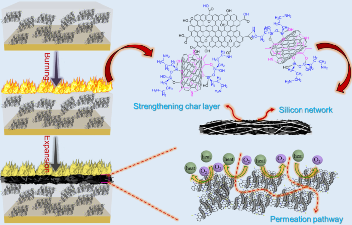 圖16 GO@M-CNTs/EP的燃燒阻燃機(jī)理。