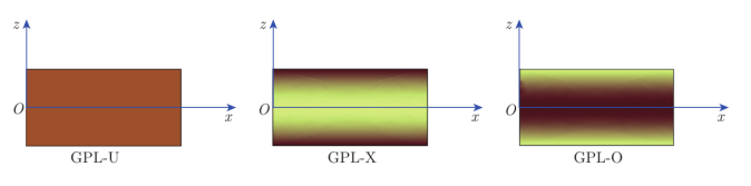 圖2. FG-GPLRC材料中三種GPLs的分布模式。