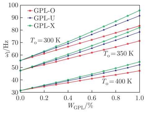 圖4. FG-GPLRC截錐殼的線性基本固有頻率。