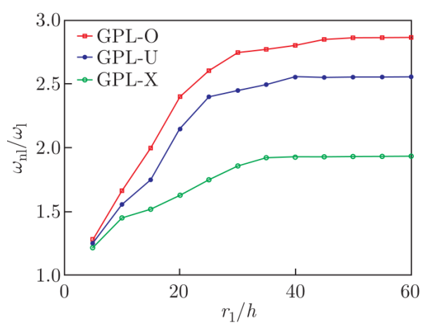 圖7. FG-GPLRC截錐殼的徑厚比r
