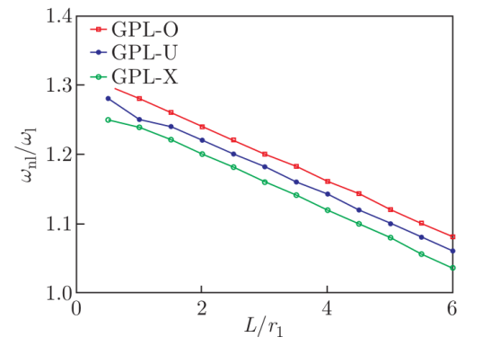 圖8. FG-GPLRC截錐殼長徑比L/r